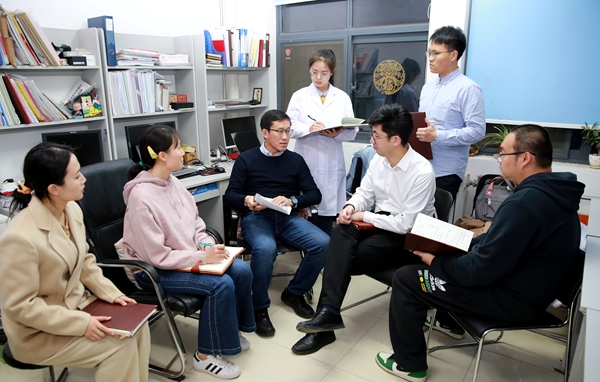 刘学波教授与刘志刚教授、博士研究生刘小宁、硕士研究生栗享等团队成员研讨